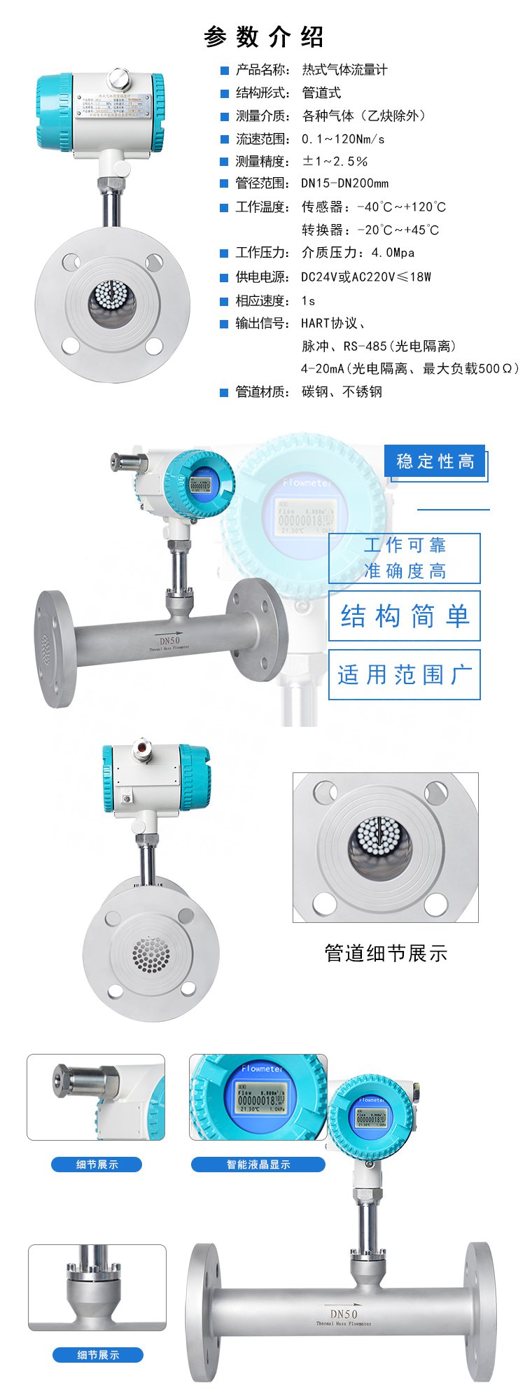 9、直接質(zhì)量流量檢測,無需溫度壓力補(bǔ)償;